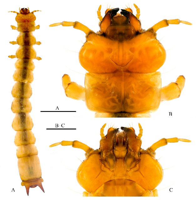 Detailed views of the larvae of a new species of Pseudopyrochroa - Young, D. K. 2021. The Outdoor Classroom in Spring. Kemp’s Point. News from the University of Wisconsin-Madison’s Kemp Natural Resources Station. 22(1): 3.