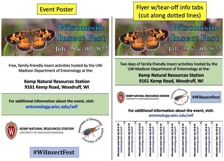 Use the hashtag #WiInsectFest on social media to share news or info about the event. Check out this downloadable event poster & tear-off info flyer for use at library bulletin boards and other locations: